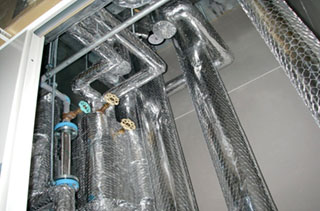 ビル、工場のタンクや配管などの熱を外に逃がさない、または外部からの熱の侵入を防ぐために、熱を伝えにくい材料である保温保冷材を取り付ける工事を「保温保冷工事」または「断熱(熱絶縁)工事」と言います。